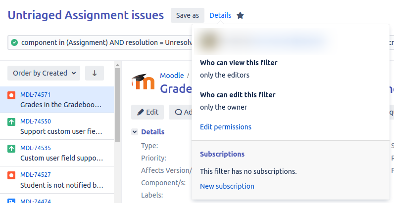 You can also add New subscription if you want to be notified periodically about new issues in any of the filters you've created.